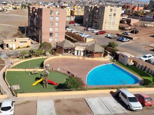 El Condominio Las Palmas V, se encuentra ubicado en el centro sur de la ciudad de Arica, en sector residencial consolidado de alta plusvalía buen nivel económico y demanda, a pasos del centro cívico, terminales agropecuario, Universidad de Tarapacá, colegios, hospital, clínica San José, supermercados, y frente al estadio Carlos Dittborn. Movilización colectiva a las otras zonas de la ciudad.