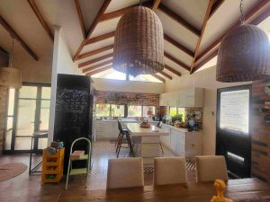 Cocina americana totalmente amoblada. Ingreso independiente. Estacionamiento techado para 4 vehículos