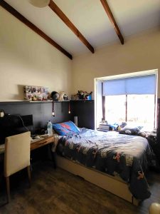 dormitorio 4 con closet y vista al jardín.