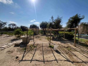 árboles frutales con instalación de riego por goteo